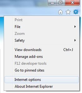இண்டர் நெட் எக்ஸ்புளோரர் - பிரவுசரில் "Internet Options" தேர்வு செய்து கொள்ளவும். உதவிக்கு இந்த படத்தைப் பாருங்கள்.